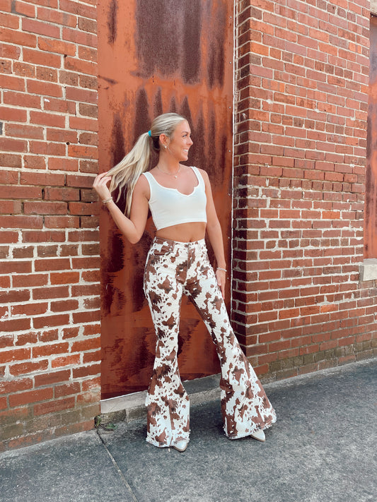 Cow Print Flare Jeans