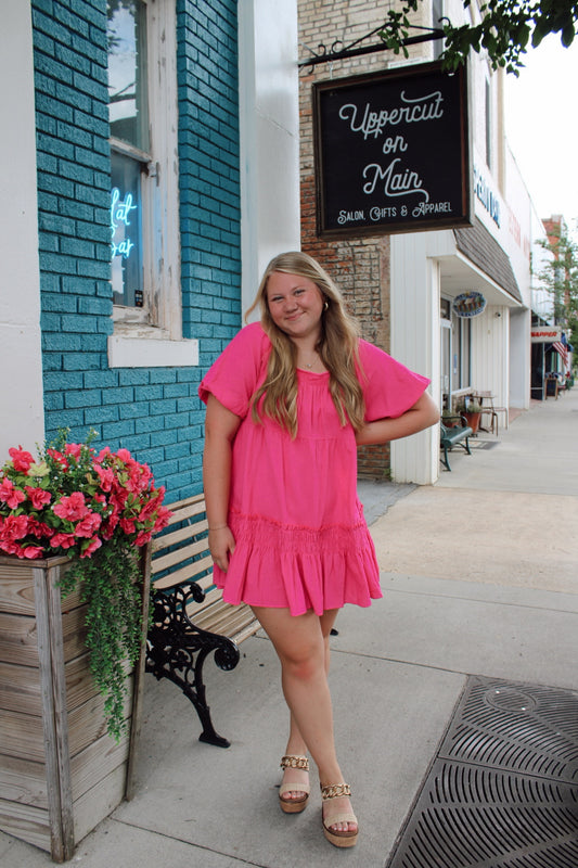 UMGEE Crochet Trim Tiered Babydoll Dress