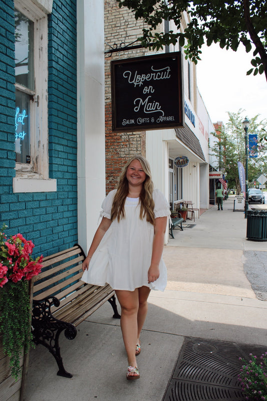 UMGEE Round Neck Cotton Dress With Puff Sleeves