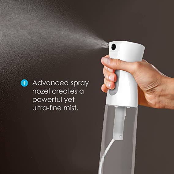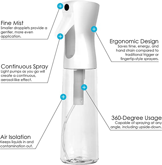 - MINIMAL SPRAY SOUND, MAXIMUM SPRAY ACTION: Bottle can disperse a fine mist or a continuous spray, depending on the amount of pumps. A short, lighter squeeze results in a short, quiet bursts of fine mist, while multiple light pumps gives you a continuous aerosol-like mist that is capable of spraying upside down for a full 360-degree spray.