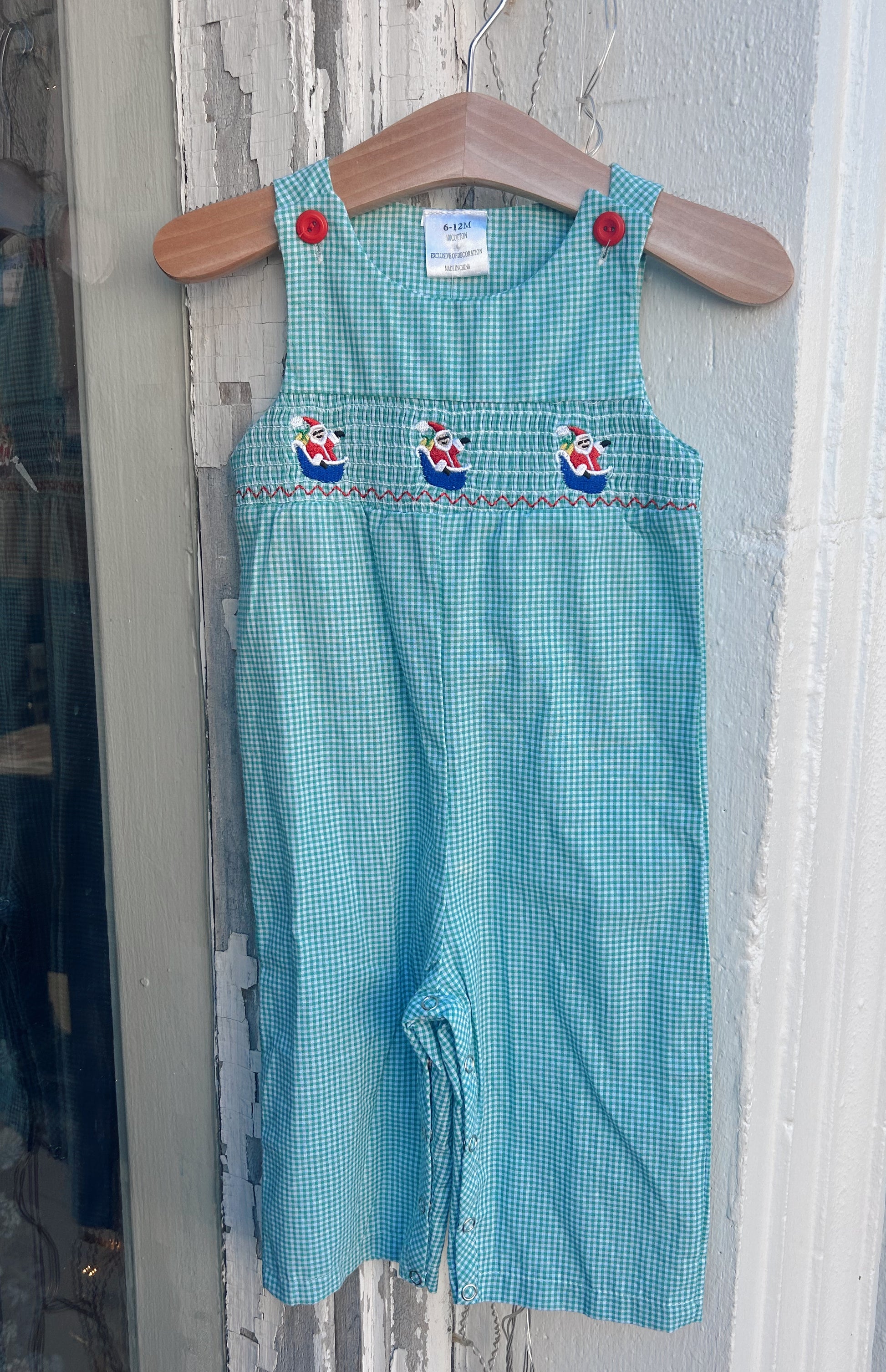 Have your little one dressed for the season with this cute green plaid Santa smocked jonjon