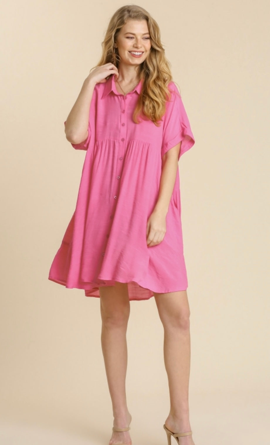 Sheer Short Sleeve Collar Button Down Back Tiered Dress with No Lining