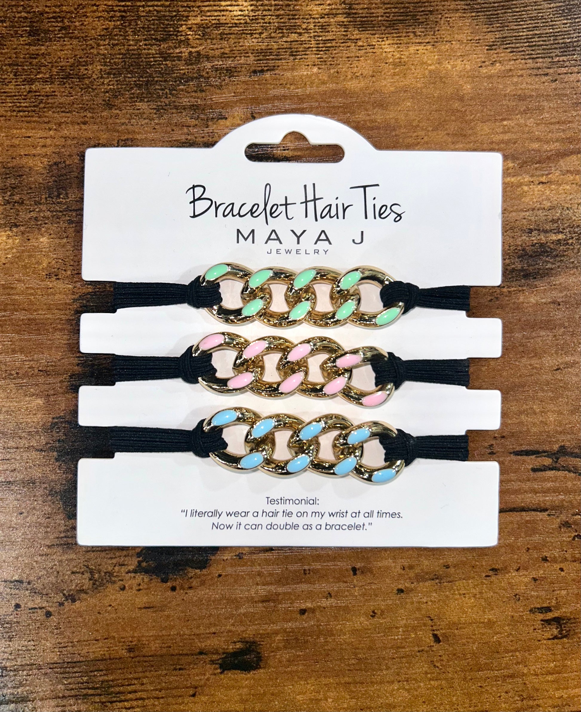 Maya J Jewelry takes two things we love to wear on our wrists, hair ties and trendy bracelets, and combines them into one fashionable jewelry accessory - Bracelet Hair Ties! It’s a must-have, perfect for the upcoming holidays and the ideal stocking stuffer! It’s a piece that everyone is sure to love and actually use, easily mixed and matched with other bracelets you already own. At an affordable price, it’s great for all ages, arriving on a beautiful card of three designs. You’ll soon want to wear one on your wrist at all times!