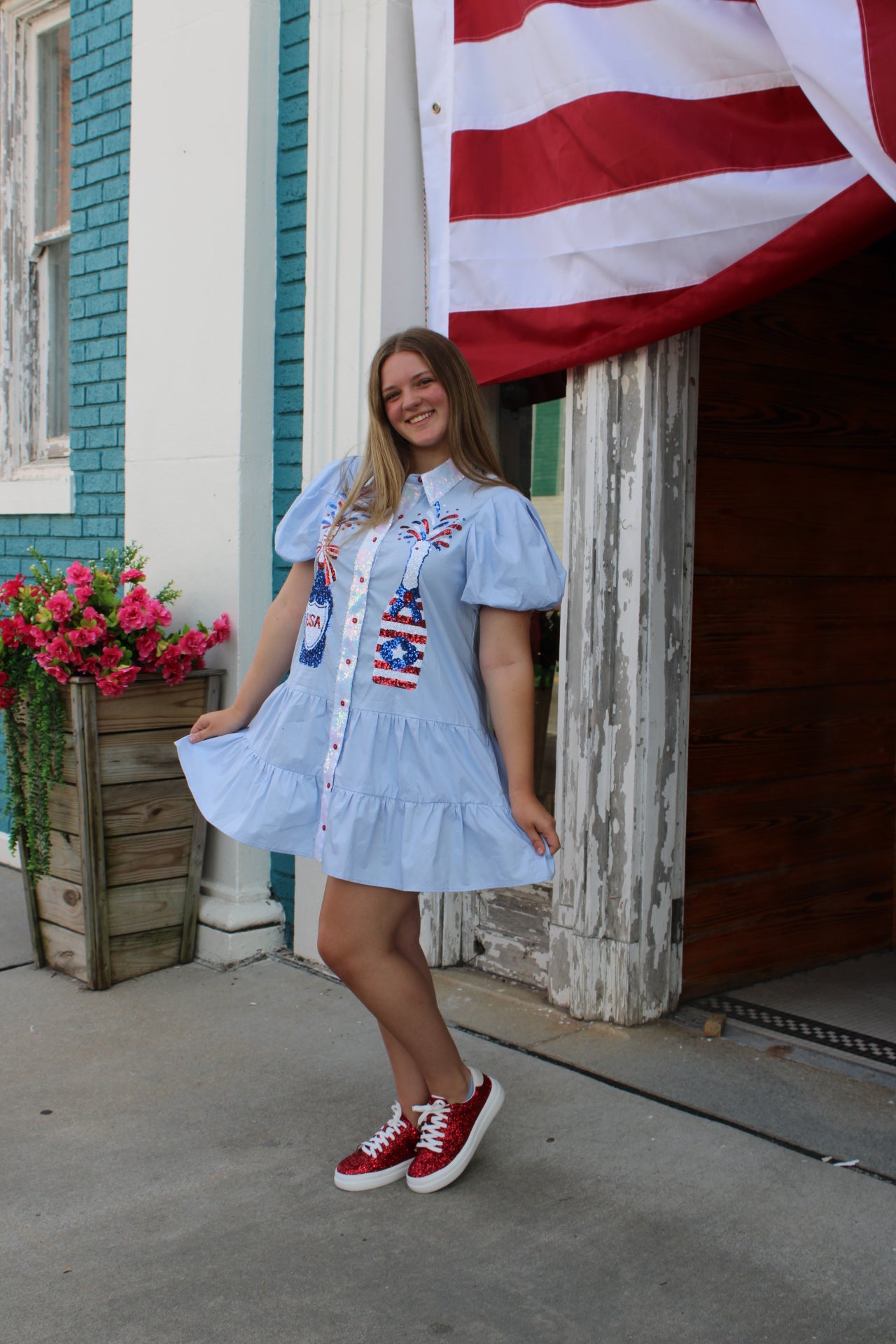 Celebrate in style with this Patriotic Sequin Dress, featuring short puff sleeves and shimmering sequins that capture the spirit of any occasion. Designed with practical pockets, it combines festive flair with everyday functionality. The dress offers a flattering fit that enhances your silhouette while ensuring comfort, making it perfect for events where you want to stand out with confidence and ease.