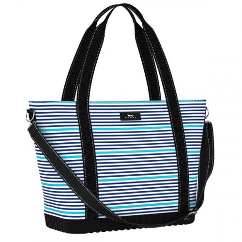 A large, soft cooler you can sling over your shoulder like a tote bag? Sign up here! The molded bottom stands up to any surface and it comes with a long, detachable strap for carrying versatility. Not just reserved for snacks and drinks either.
