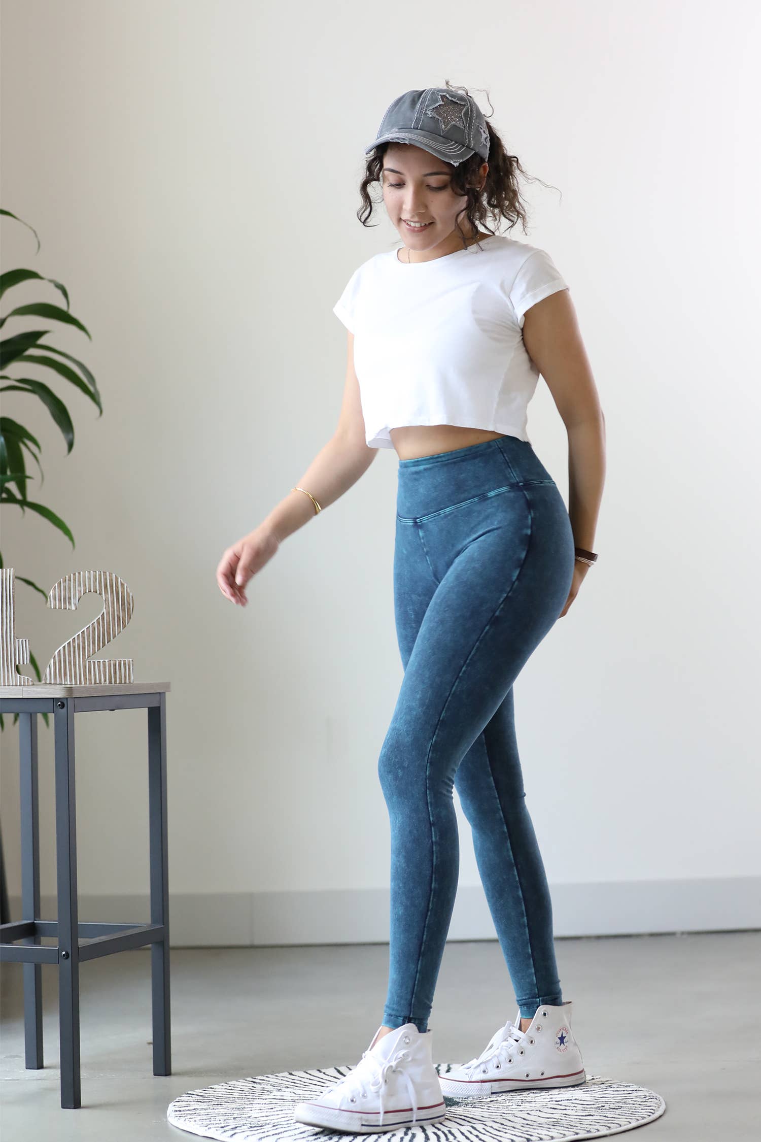 SI-16456 MINERAL WASHED WIDE WAISTBAND YOGA LEGGINGS