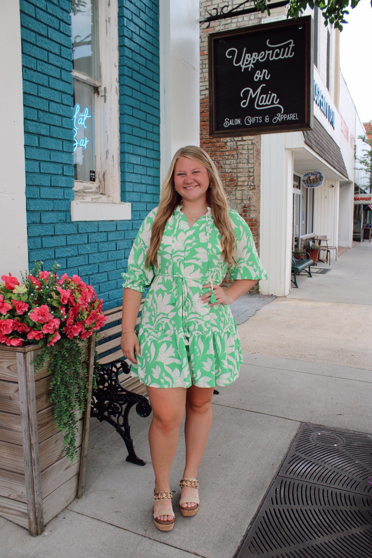UMGEE Green Floral Ruffle Sleeve Dress